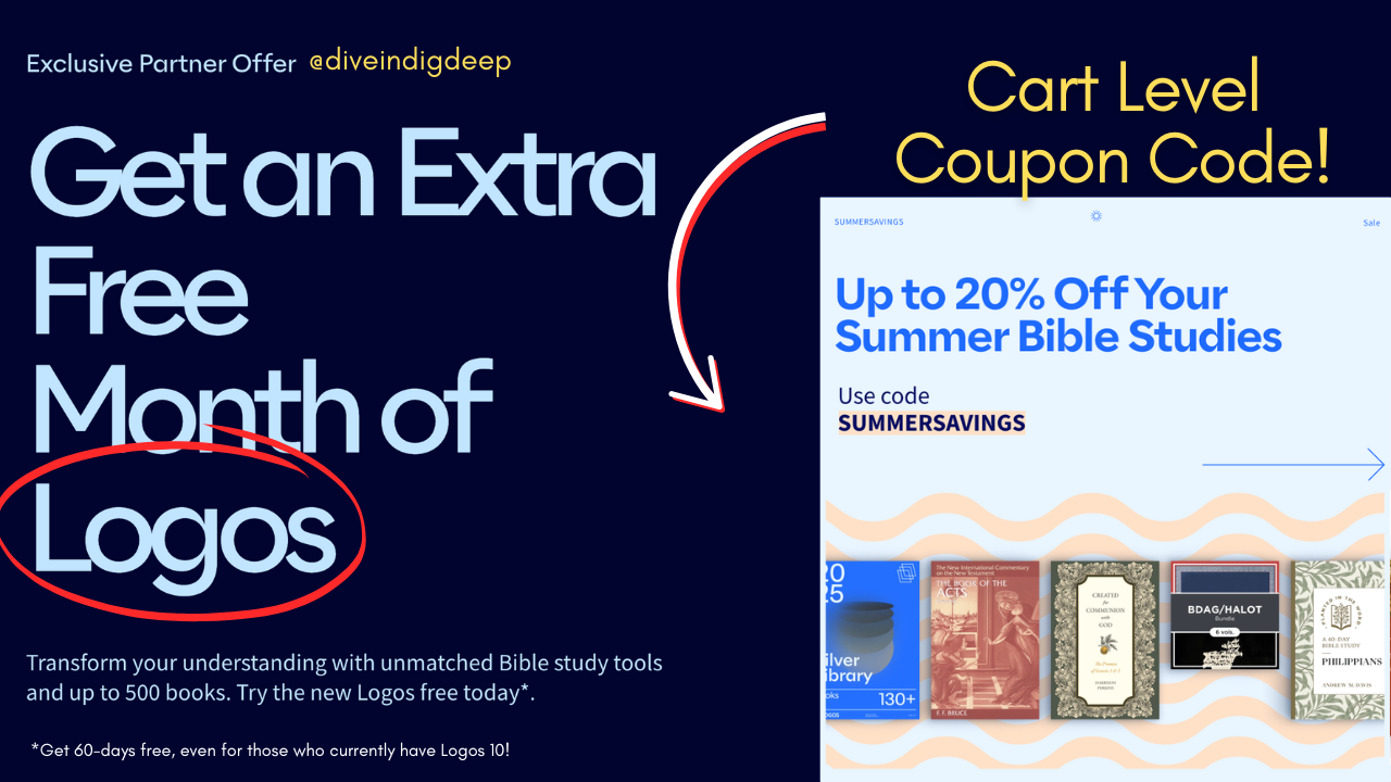 I am a proud partner with Logos, the world's leading Bible research platform. Logos will change how you engage with God’s Word, and is the gold standard resource for those who want to dive in and dig deep into Scripture. Check out my review of Logos, and visit my website for an extended free trial (get an extra month free).